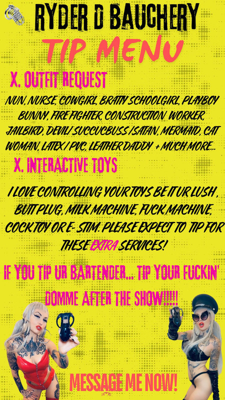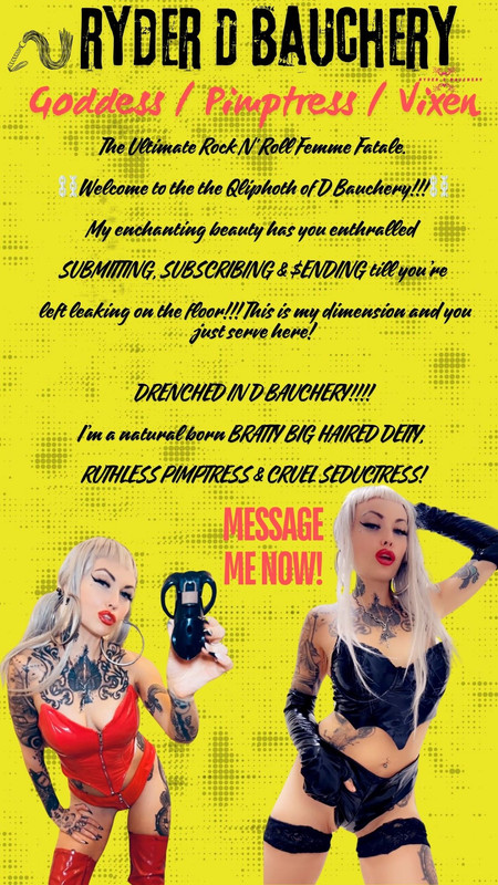 Ver más modelos de las etiquetas de Ryder D Bauchery: fetish / heels / femdom / findom / tattoos / cei / bdsm / mistress / sph / boots / CBT / footfetish / goddess / strapon / Domme / tattoo / footworship / fishnets / kink / fastresponse