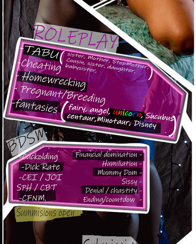 - roleplay, dominatrix, cuckold, femdom, findom, squirt, bigass, bignipples, latina, joi, cei, sissy, mistress, bondage, humiliation, vanilla, blackmail, sassy, punish